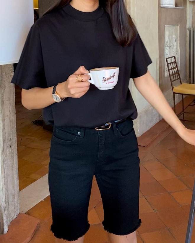 Hè đến thì đừng bỏ qua "combo" ăn diện ngon nghẻ gồm áo phông đen/trắng basic với quần shorts cá tính, năng động này. Bạn có thể chọn áo phông trơn và nhấn nhá bằng quần hoặc phụ kiện, hay "quẩy" hẳn áo phông hoạ tiết để nhìn vào là nổi bật ngay.
