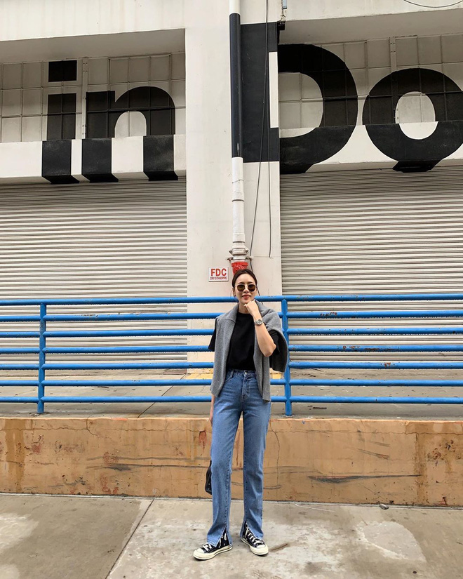 Thay vì chỉ diện hai món cơ bản là áo phông, quần dài thì để set đồ thêm "nét" hơn, hãy thử kết hợp với blazer hoặc cardigan nhé! Chắc chắn bạn sẽ thấy áo phông bớt chán đi nhiều, thậm chí là còn mang đến cảm giác phóng khoáng, trẻ trung cho chính chủ. Đây cũng là "công thức" mặc đẹp dễ áp dụng và chuẩn với số đông nữa chứ.