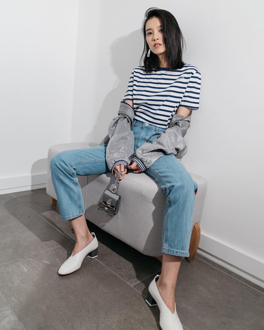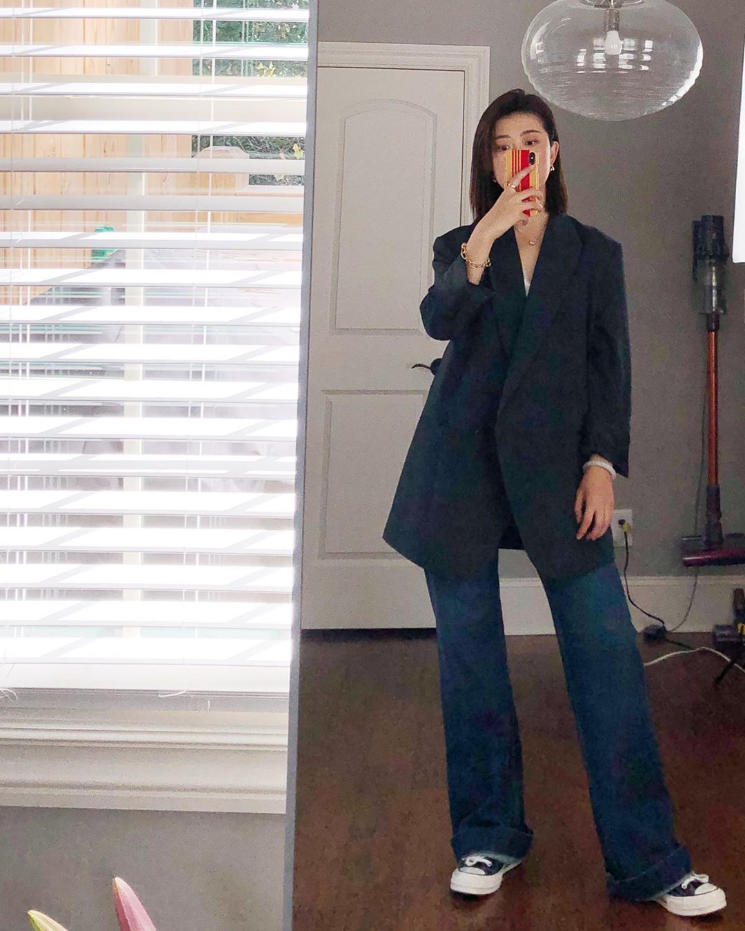 Sơ vin gọn gàng áo lại để tổng thể bớt lùng bùng hoặc chọn những thiết kế áo khoác dáng lửng như vậy tổng thể sẽ cân đối hơn, đôi chân cũng dài hơn nhờ mẹo nhỏ này.
