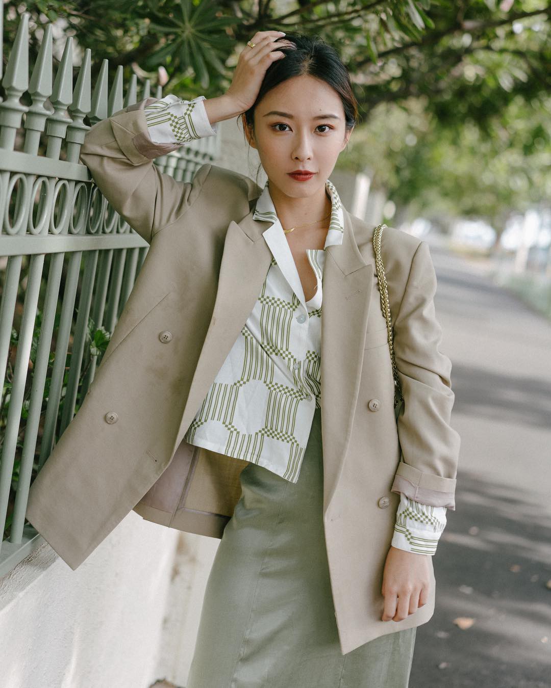 Khi diện những items màu xanh cỏ úa, bạn nên kết hợp cùng món đồ cũng mang gam màu dịu dàng, nhã nhặn và set trang phục sẽ toát lên 100% vẻ thanh lịch, sang trọng.