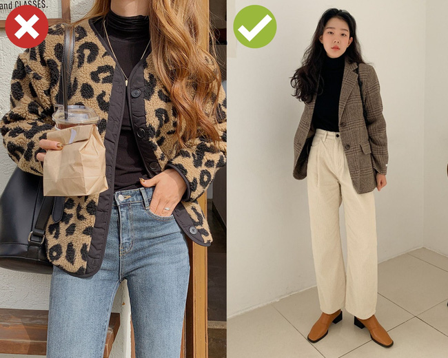 Áo họa tiết da động vật vẫn được bày bán rất nhiều tại các shop thời trang, tuy nhiên, hãy suy nghĩ thật kỹ trước khi rút hầu bao cho những chiếc áo khoác da trăn, da báo… Trước nhất, đây là item chẳng phải ai mặc cũng hợp, vẻ ngoài dễ hóa đồng bóng, sến sẩm. Tiếp theo, item này khó mix đồ, đặc biệt nếu bạn là tay mơ thì tổng thể dễ thành thảm họa trong tích tắc. Cuối cùng, áo khoác da động vật sẽ cộng tuổi cho người diện, nếu không muốn thành bà cô thì tốt nhất là bạn nên "né", ưu tiên những chiếc áo họa tiết kẻ ô thì trông sành điệu, trẻ trung hơn hẳn.