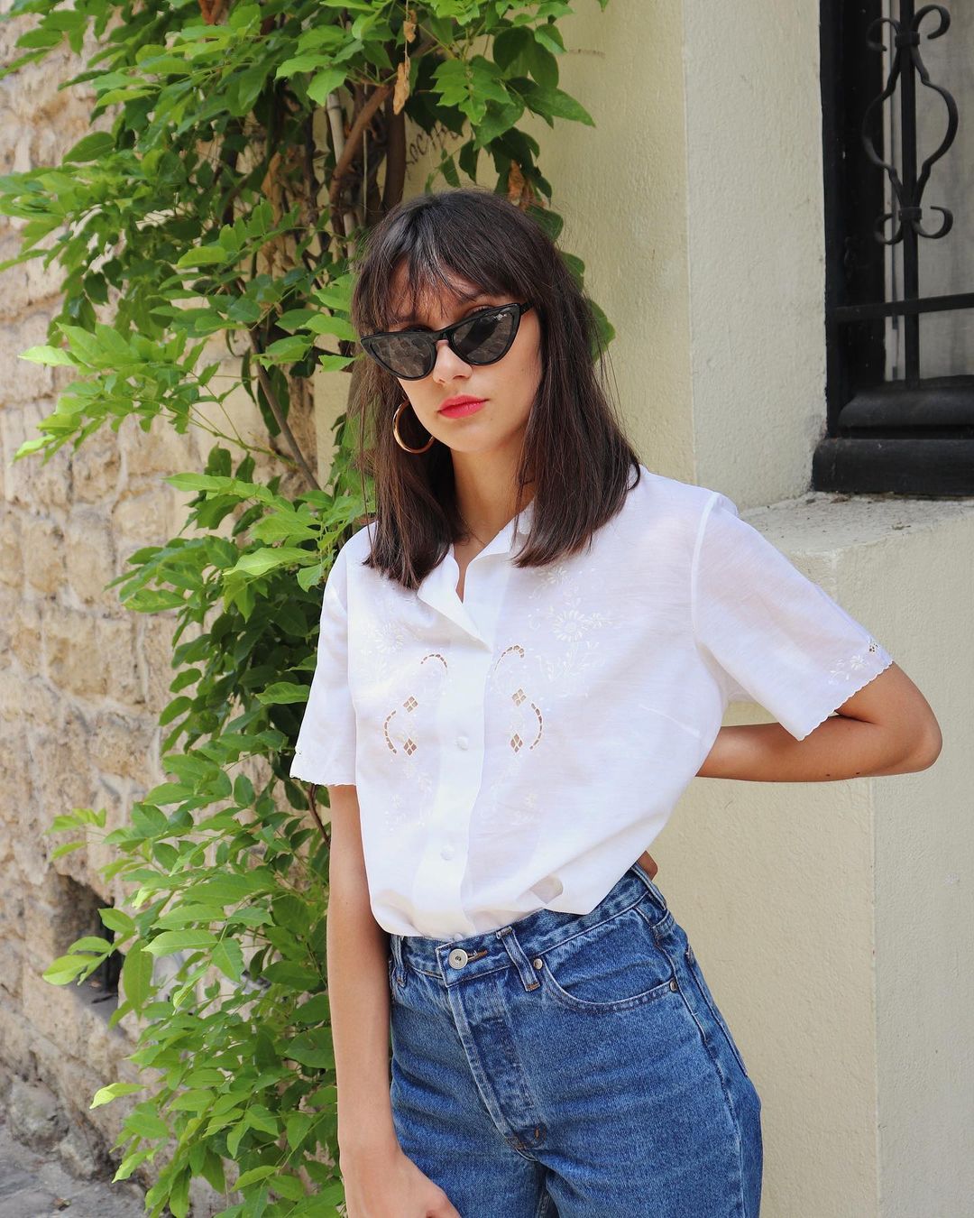 Vào mùa hè, nếu như các quý cô Hàn Quốc rất chuộng áo sơ mi dài tay, sau đó xắn lên gọn gàng thì chân ái của phụ nữ Pháp phải là áo sơ mi cộc tay. Kiểu áo này phủ sóng mạnh mẽ, và rất hay được mix với quần jeans. Bộ đôi áo sơ mi cộc tay + quần jeans sẽ giúp người mặc có được vẻ ngoài trẻ trung và ngọt ngào, nhưng vẫn toát lên nét cổ điển đầy lãng mạn. Lý tưởng nhất, bạn nên sơ vin áo ngắn tay với quần jeans để vẻ ngoài trông thật chỉn chu, thanh lịch. Nhưng nếu không đóng thùng khi mặc combo này, trông bạn vẫn rất ổn với vẻ ngoài phóng khoáng.