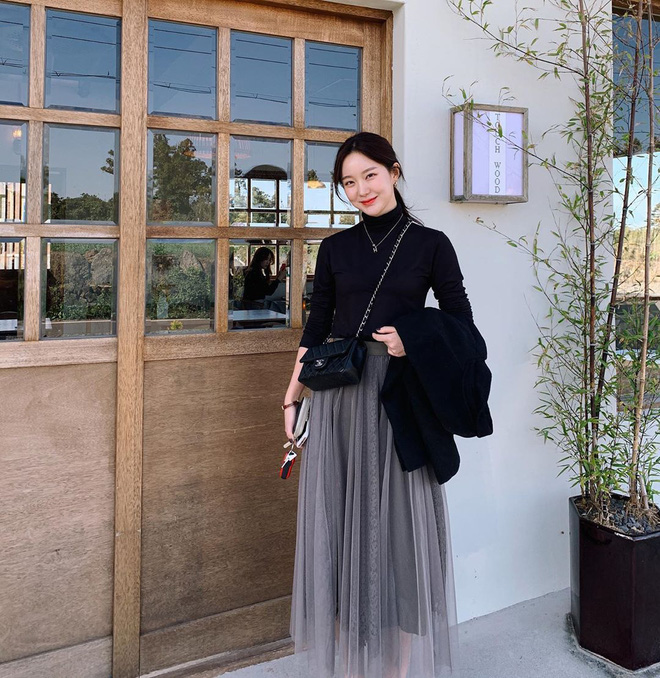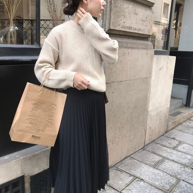 Hội sành mặc xứ Hàn cũng đồng lòng lăng xê chân váy len tăm thanh lịch, nhã nhặn hết nấc. Tất nhiên, nếu muốn nâng điểm phong cách và lên đồ đỏm dáng tiểu thư quyến rũ thì "quẩy" item này là quyết định đúng đắn, ai cũng nên thử ít nhất một lần.