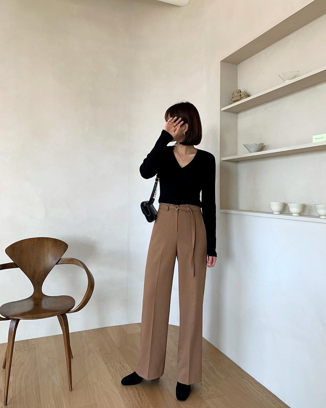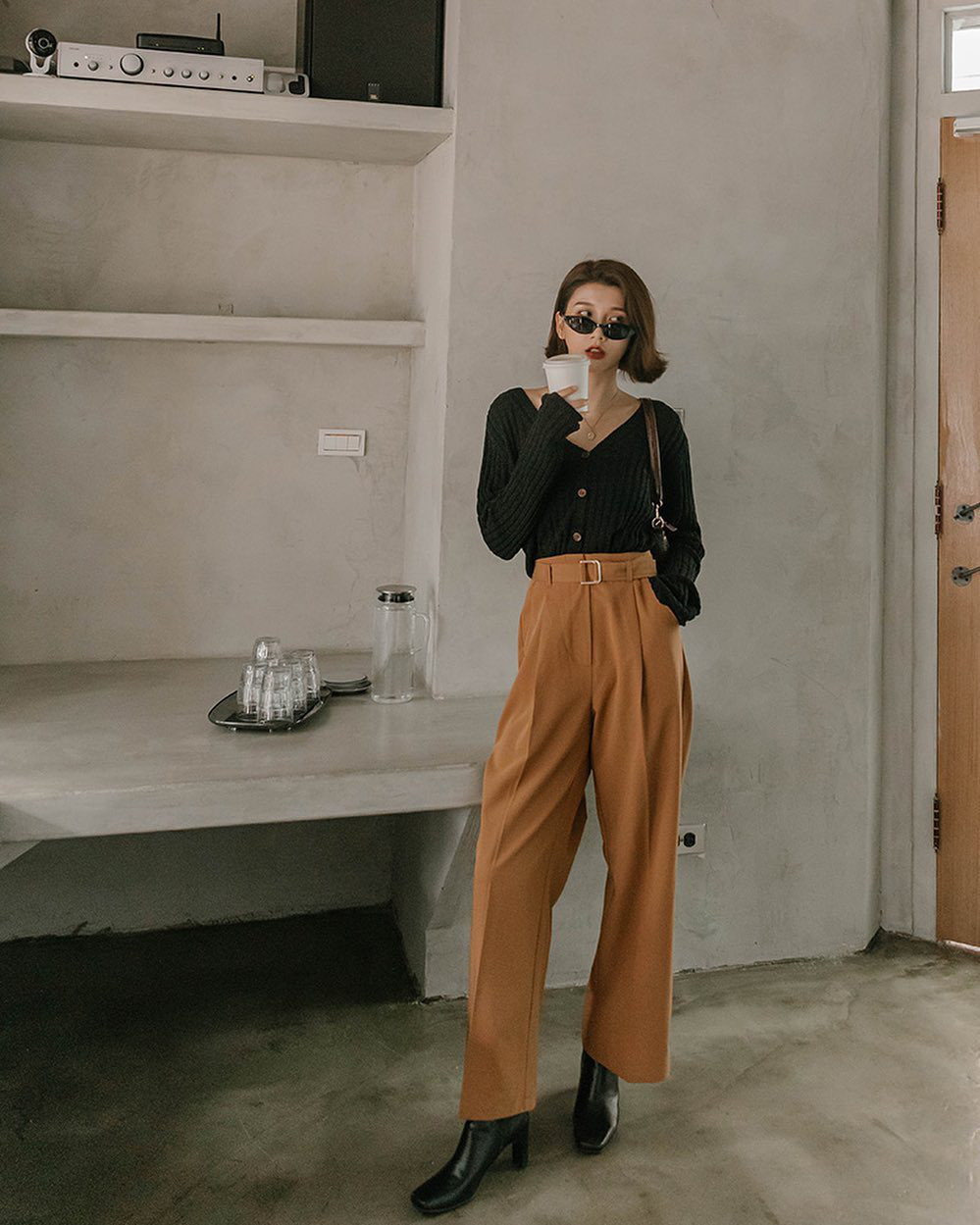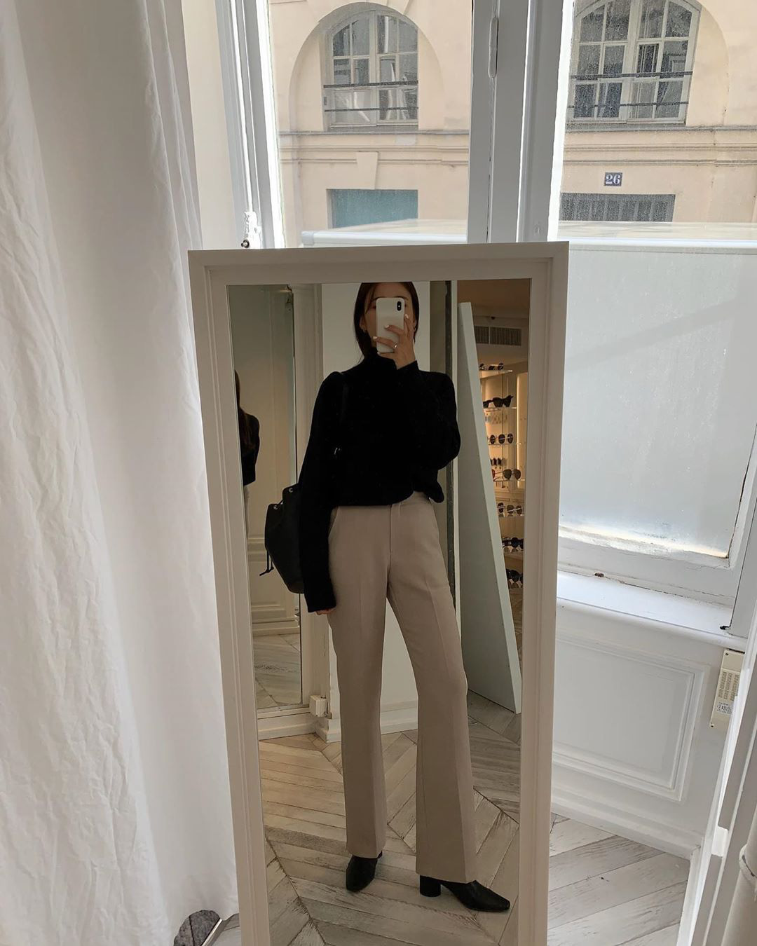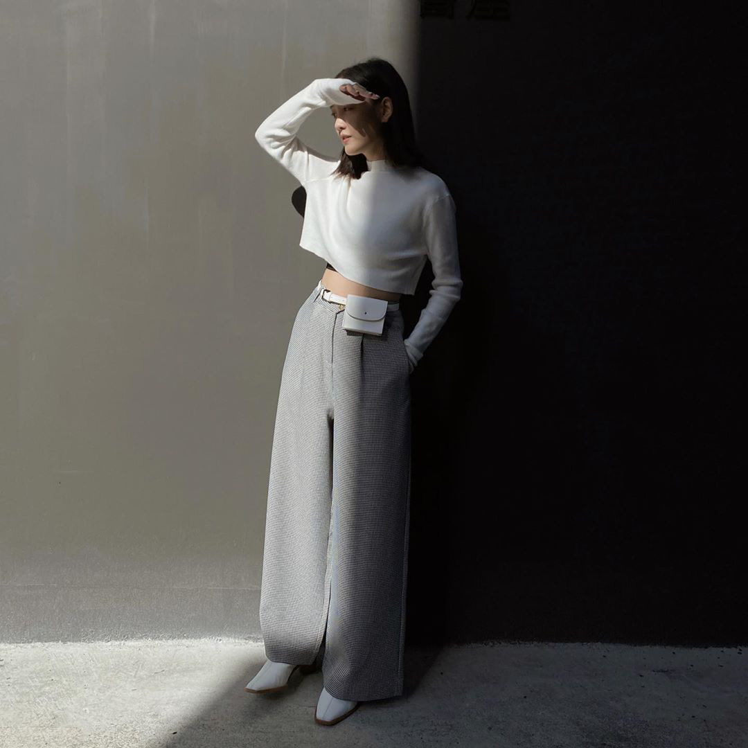 Quần ống dài mix với giày bệt thì dễ cho bạn set đồ luộm thuộm, dìm dáng nhưng một khi đã kết hợp với giày cao gót, mọi chuyện lập tức rẽ sang hướng khác. Lúc này, giày cao gót sẽ phù phép cho đôi chân trở nên dài miên man bất tận, chiều cao của bạn cũng được "ăn gian" cả chục centimet. Tuy nhiên, hiệu quả hack dáng của bộ đôi quần ống dài qua mắt cá chân + giày cao gót chỉ được phát huy triệt để nếu bạn sơ vin nên đừng quên thao tác nhỏ mà có võ này nhé!