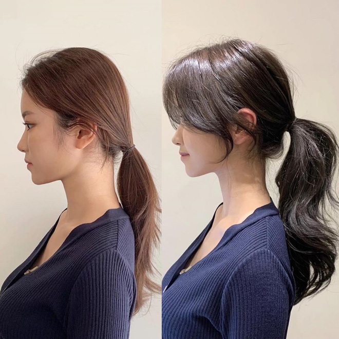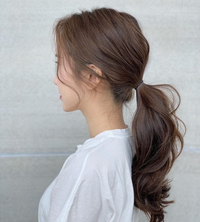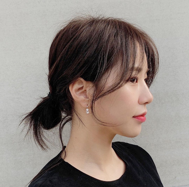 Nếu một ngày nào đó muốn xuất hiện với vẻ ngoài năng động, mới mẻ hơn, bạn có thể thử buộc tóc đuôi ngựa làm tăng thần thái. Kiểu tóc đơn giản, không cầu kì hứa hẹn giúp bạn trông trẻ hơn vài tuổi. Tuy nhiên, bạn cũng nên học gái Hàn chăm chút tóc mái tránh để lộ trán 100% và cũng uốn nhẹ đuôi tóc để có diện mạo hoàn hảo hơn.