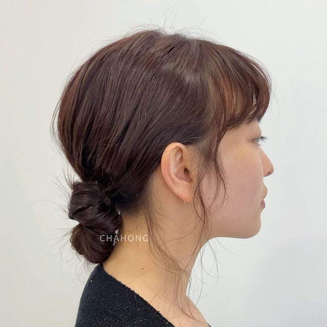 Nếu chọn kiểu búi tóc thấp như gái Hàn, thì xin chúc mừng bạn đã có lựa chọn chính xác. Kiểu tóc này giúp bạn trông sành điệu, trẻ trung nhưng không kém phần dịu dàng. Chỉ cần vài thao tác với chun buộc, bạn đã có mái tóc búi chuẩn chỉnh rồi. Không như tóc buộc thấp, tóc búi thấp hợp cho những nàng tóc dài lẫn tóc ngắn ngang vai. Diện style tóc này và kết hợp với áo trễ vai, bạn còn khoe được chiếc cổ thon, gợi cảm nữa.