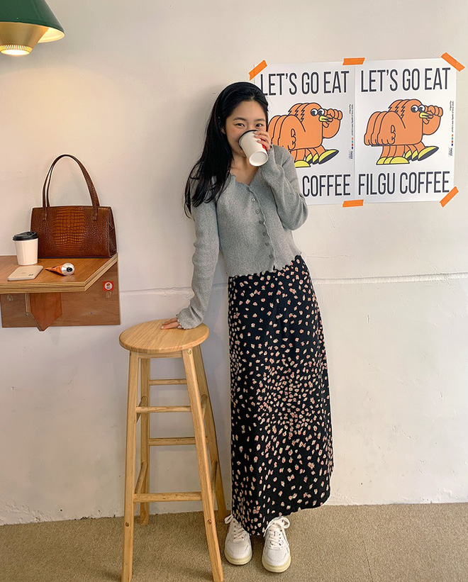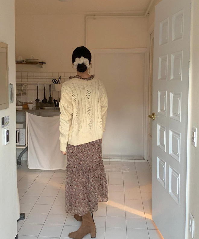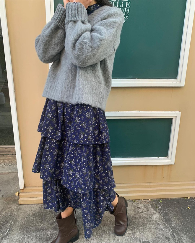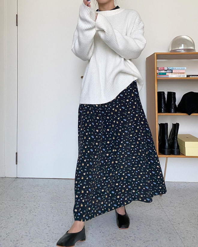 Ngoài áo khoác thì áo len cũng sẽ là một lựa chọn đầy ấm áp để mix cùng váy hoa trong ngày lạnh. Một chiếc áo len mặc trùm bên ngoài váy liền hay mix cùng chân váy ngắn, chân váy midi cũng đều rất xinh và dễ diện. Công thức này không chỉ giúp bạn ghi điểm với vẻ ngoài nữ tính, ngọt ngào mà còn vừa đủ ấm áp nếu năm nay chúng ta sẽ đón một cái Tết lạnh.
