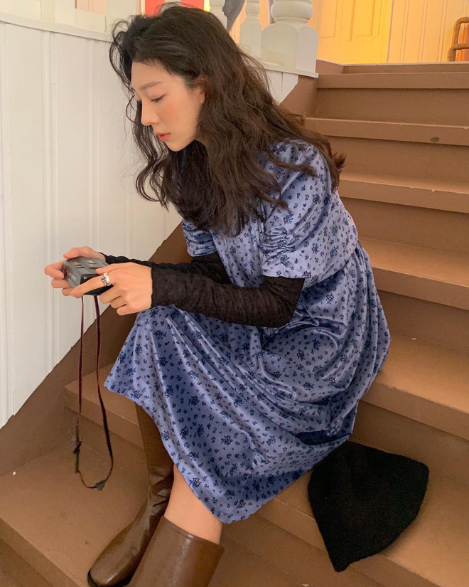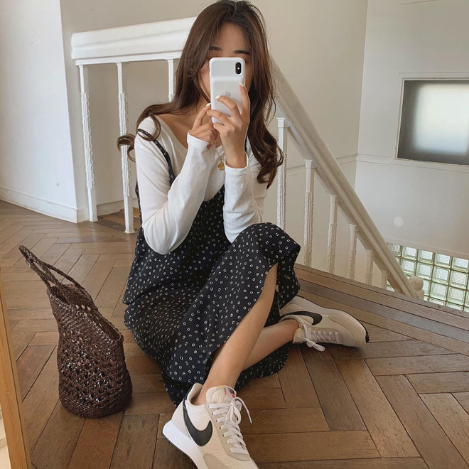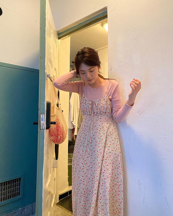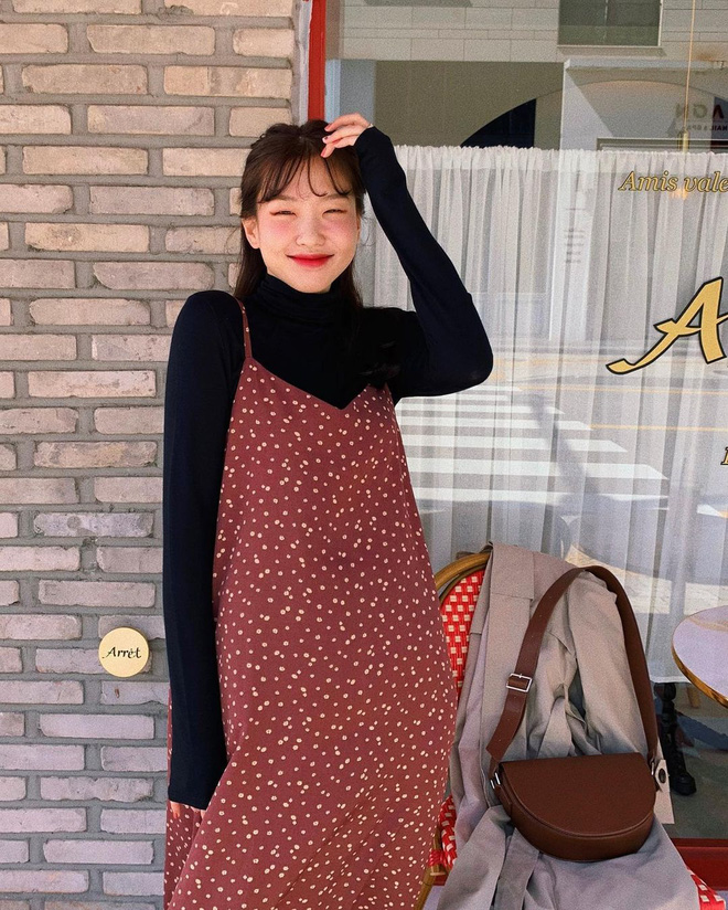 Một công thức mix&match cũng rất xinh xẻo để diện trong thời tiết se lạnh đó là layer váy hoa hai dây với áo len/áo thun body. Bộ đôi này cũng rất dễ tính nên bạn chỉ cần nhớ nguyên tắc chọn áo trơn màu khi kết hợp với váy hoa là yên tâm lên đồ kiểu gì cũng sẽ xinh và nịnh mắt.