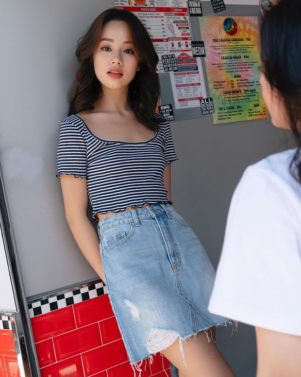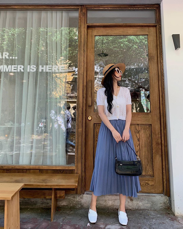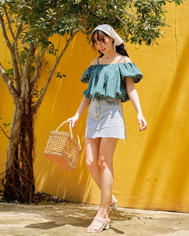Nếu sở hữu một chiếc chân váy denim thì chắc chắn bạn có thể kết hợp với áo blouse, crop top hoặc áo hai dây, áo phông basic vẫn cứ đẹp. Bởi item này vô cùng "dễ tính", cho bạn tha hồ mix & match mà không sợ sai. Tuy nhiên, để trông nhẹ nhàng vào mùa thu thì các cô gái cũng nên tập tành phối item này với áo blouse giúp toát lên style nữ tính, ngọt ngào. Hoặc với những nàng cần một set đồ thoải mái, gọn nhẹ, mát mẻ nhất, cứ chọn crop top là chuẩn.