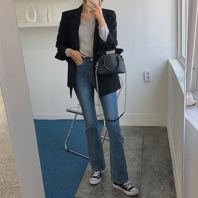 Quần ống rộng vẫn đang làm mưa làm gió nhưng sức hút của quần ống loe cũng mạnh mẽ không kém gì. Vậy nên, để trở thành quý cô sành mặc trong năm sau, bạn nhất thiết phải có ít nhất một chiếc quần ống loe trong tủ. Tuỳ theo style trước nay mà bạn có thể chọn quần jeans ống loe để trông năng động, thoải mái hoặc "quẩy" quần tây ống loe tại chốn văn phòng giúp nâng tầm vẻ thanh lịch.