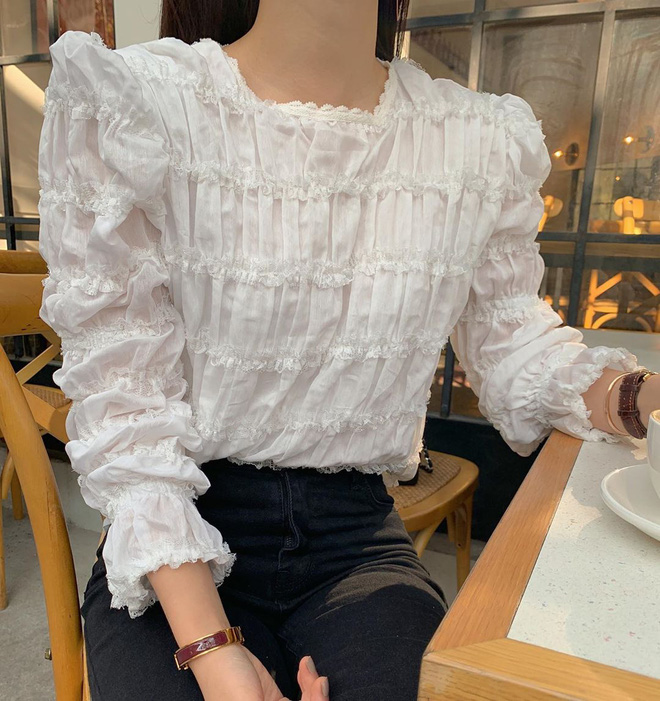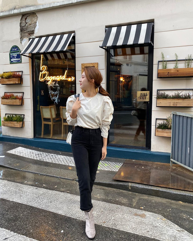 Tuy không phải là item mới toanh nhưng áo tay bồng nhẹ nhàng, nữ tính vẫn được lòng nhiều tín đồ sành mốt và thích hợp để diện trong dịp xuân. Các hot girl Hàn cũng thi nhau diện item này, tạo nên nhiều outfit chuẩn không cần chỉnh.