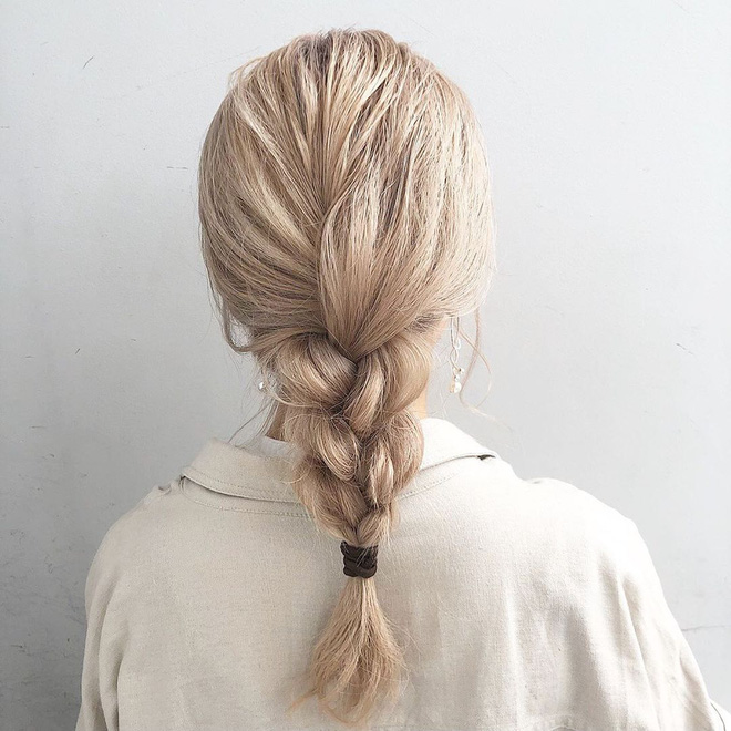 Không gì đơn giản hơn bằng kiểu tóc tết truyền thống. Vậy nên, thay vì để xoã hay buộc thấp sơ sài thì chia tóc làm 3 và bắt đầu tết đến hết chiều dài tóc, bạn sẽ có ngay kiểu tóc tiểu thư, dễ thương như các hot girl Hàn, Nhật.