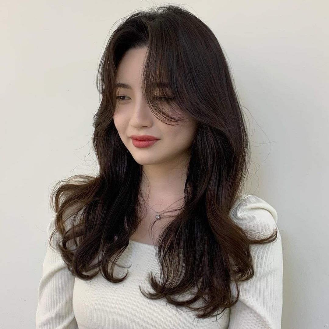 Kiểu mái với hai bên tóc rẽ đôi, tỉa đuổi này đang là mốt được các quý cô từ Âu sang Á áp dụng. Khác với các quý cô trời Âu một chút, tóc mái rèm cửa kiểu Hàn thường khá mỏng, mượt mà và có độ phồng chuẩn đẹp nên tạo cảm giác nhẹ mặt, hiện đại hơn. Đây cũng là kiểu tóc định hình gương mặt rất tốt và cho bạn vẻ ngoài phóng khoáng, sành điệu.