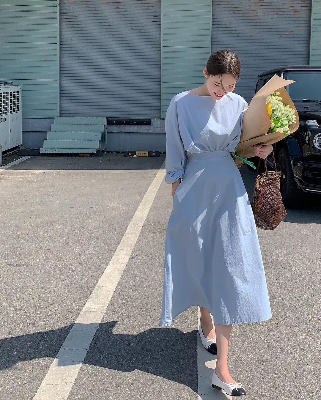 Váy trắng là item cơ bản, nhất định nên xuất hiện trong tủ đồ của các chị em công sở. Kiểu váy này thực sự dễ diện vì hợp với mọi tông da, lứa tuổi và dáng người. Váy trắng còn là chìa khóa cho vẻ ngoài thanh lịch, trang nhã nên lại càng hợp công sở. Chưa hết, với gam màu trắng nhẹ nhàng, sáng sủa, váy trắng còn tạo cảm giác "mát mắt" hơn cho outfit của bạn, đồng thời mang đến sự trẻ trung cho người diện. Để hoàn thiện được vẻ ngoài chuẩn thanh lịch và tinh tế khi diện váy trắng, bạn nên nhấn nhá những món phụ kiện, giày dép mang màu trung tính.