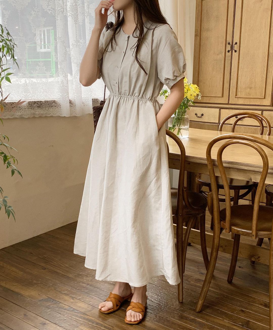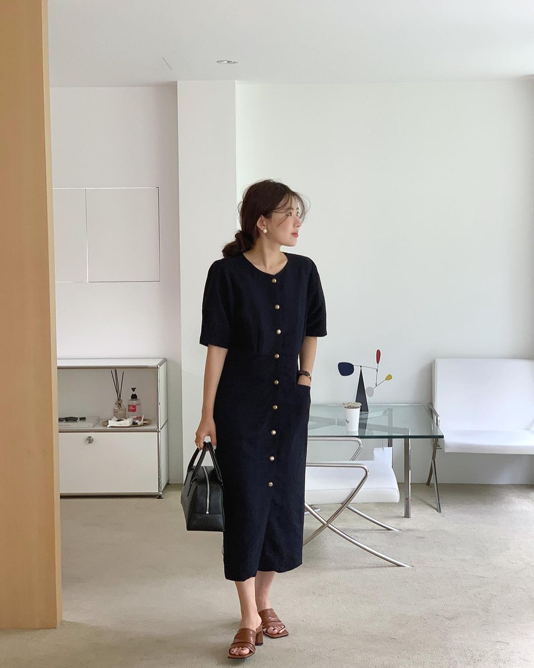 Hàng khuy váy tuy chỉ là một chi tiết nhỏ, nhưng lại có tác dụng nâng điểm thanh lịch cho cả mẫu váy bạn đang diện. Hè năm nay, hội sành điệu khá ưu ái những mẫu váy cài khuy mang màu trung tính, thiết kế đơn giản. Lựa chọn này trang nhã nhưng vẫn trẻ trung, sành điệu. Khi nhấn nhá giày dép và phụ kiện tinh giản, áp dụng những kiểu tóc như là búi thấp, buộc thấp, tóc xõa dịu dàng, nàng công sở sẽ đạt điểm 10 phong cách.