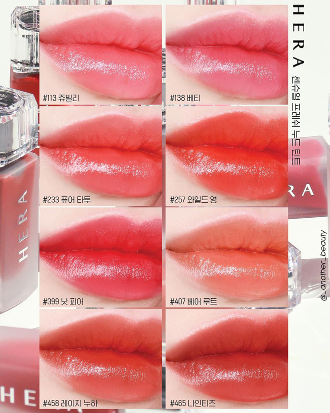 Luôn có cách "quyến rũ" các tín đồ làm đẹp không ai khác ngoài "ông lớn" Hera. Sau "son Jennie" được viral mạnh mẽ thì hãng lần nữa đốn tim hội chị em khi "nhào nặn" nên Sensual Fresh Nude Tint có diện mạo sang chảnh, lung linh hơn mấy lần. Son có tổng cộng 8 màu với đầy đủ các sắc đỏ, hồng, cam lên môi siêu mướt, ngoài ra hãng cũng có son dưỡng không màu tăng cảm giác môi mọng mịn hơn. Son được nhận xét là có khả năng dưỡng ẩm tốt nhưng không dính dớp, màu MLBB xinh xắn nịnh da, đáp ứng các tiêu chuẩn của một thỏi son "chân ái" trong lòng bất cứ cô gái nào.