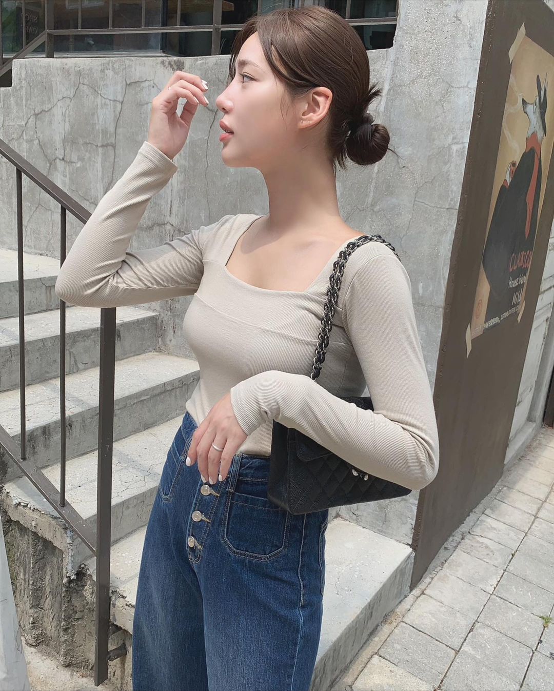 Kiểu áo dài tay này tương đối mỏng nhẹ, hợp để diện vào mùa thu vì sẽ không khiến bạn bị "ngốt" quá. Ưu điểm của áo thun cổ vuông chính là vẫn giữ được sự trẻ trung, năng động của áo thun nói chung, nhưng trông mềm mại, nữ tính hơn hẳn. Chi tiết cổ vuông sẽ giúp tổng thể trang phục thêm thanh lịch, sang trọng, và còn tôn vòng 1, nhân đôi vẻ gợi cảm cho người diện.