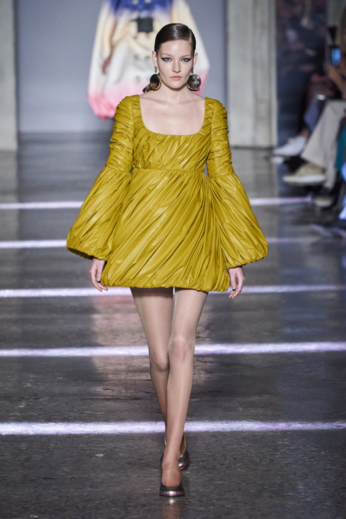 Xu hướng tay bồng từng được ưa chuộng vào năm ngoái và năm nay sàn diễn Milan đã mang tới những biến tấu mới cho hot trend này. Thay vì bồng từ phần vai, những chiếc tay áo năm nay sẽ bồng ở phần giữa cánh tay hoặc bên dưới khuỷu tay, điều này giúp các nàng vẫn khoa được bờ vai mảnh mai thon thả, vừa cập nhật được xu hướng tay bồng cực cá tính.