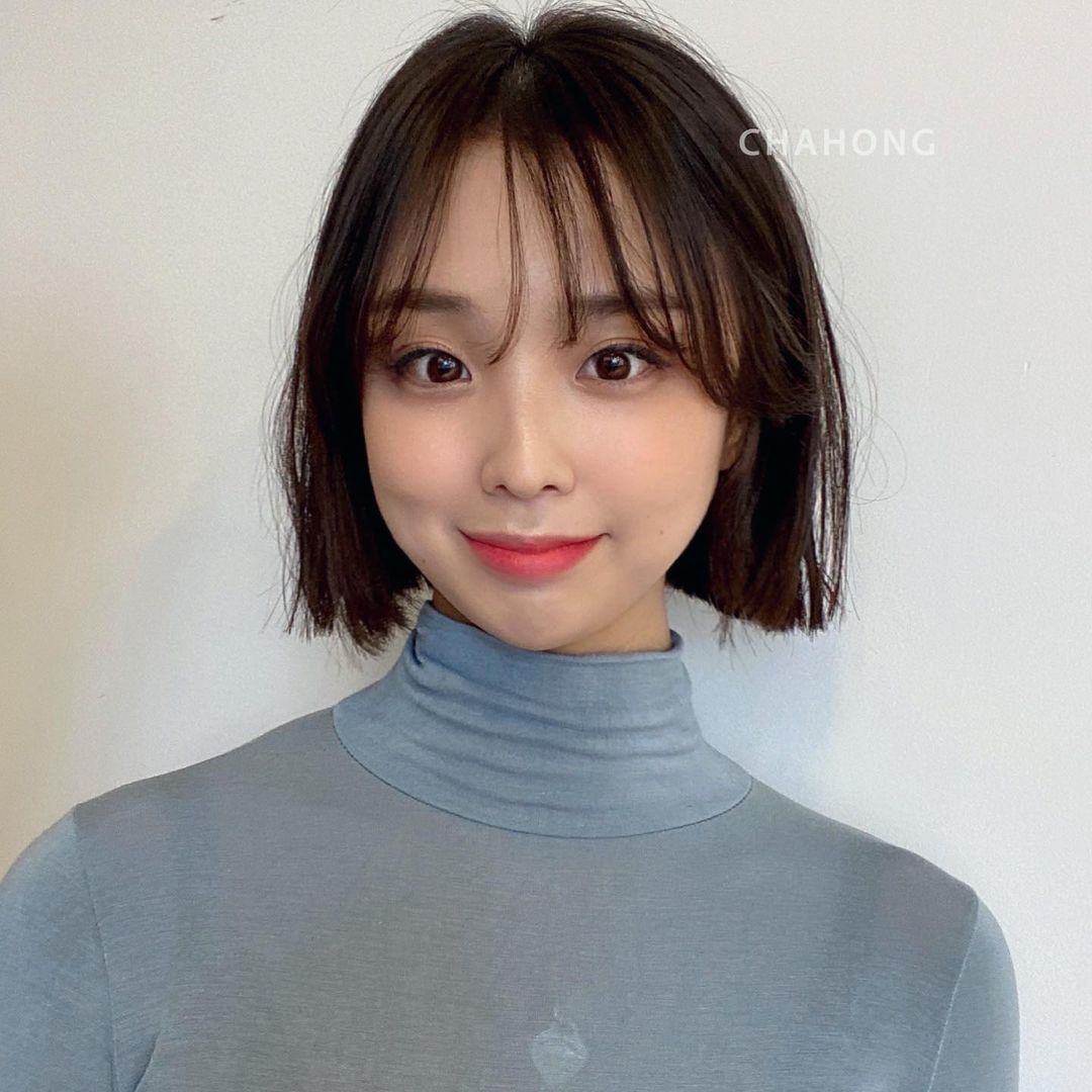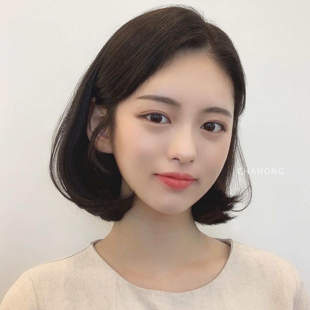 * Tóc bob chia ngôi ngẫu hững: Thay vì uốn xoăn thì chỉ cần cắt ngắn chạm gáy là phần đuôi tóc sẽ ôm lấy khuôn mặt. Kiểu tóc để lộ phần trán thanh thoát nên rất hợp với những nàng trán, mặt tròn. Phần đuôi tóc ôm nhẹ sẽ giúp gương mặt nhìn nhỏ nhắn hơn, đây cũng là kiểu tóc hack tuổi vi diệu nhất trong tất cả các kiểu tóc ngắn mà các nàng từng biết.