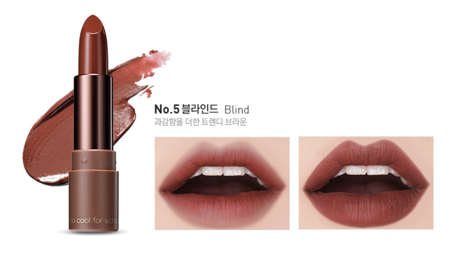 Too Cool For School Glam Rock Hush Brown Matte Lipstick – 05 Blind (khoảng 230.000 VNĐ)