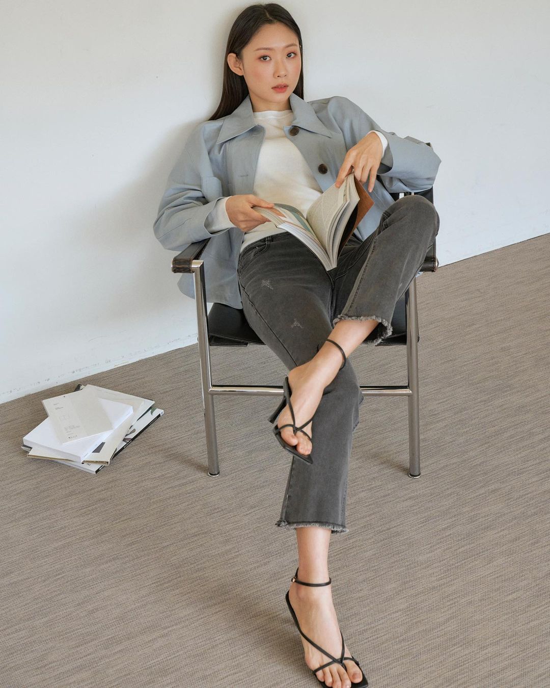 6. Quần dài và giày xuyệt tông