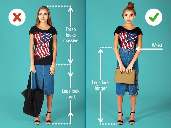 Kết hợp trang phục và phụ kiện sai có thể làm chân bạn bị ngắn đi, tỷ lệ cơ thể bị kéo xuống dưới. Các mẹo thời trang này sẽ giúp bạn khắc phục các khuyết điểm đó.