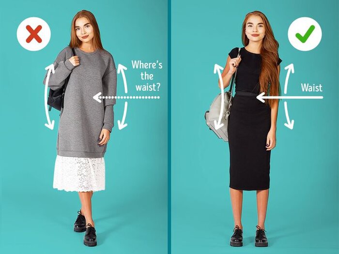 Mặt khác, những chiếc váy liền có phần eo được may hơi cao một chút sẽ hợp với các quý cô nhỏ nhắn, vì chúng làm tỷ lệ cơ thể được kéo lên trên.