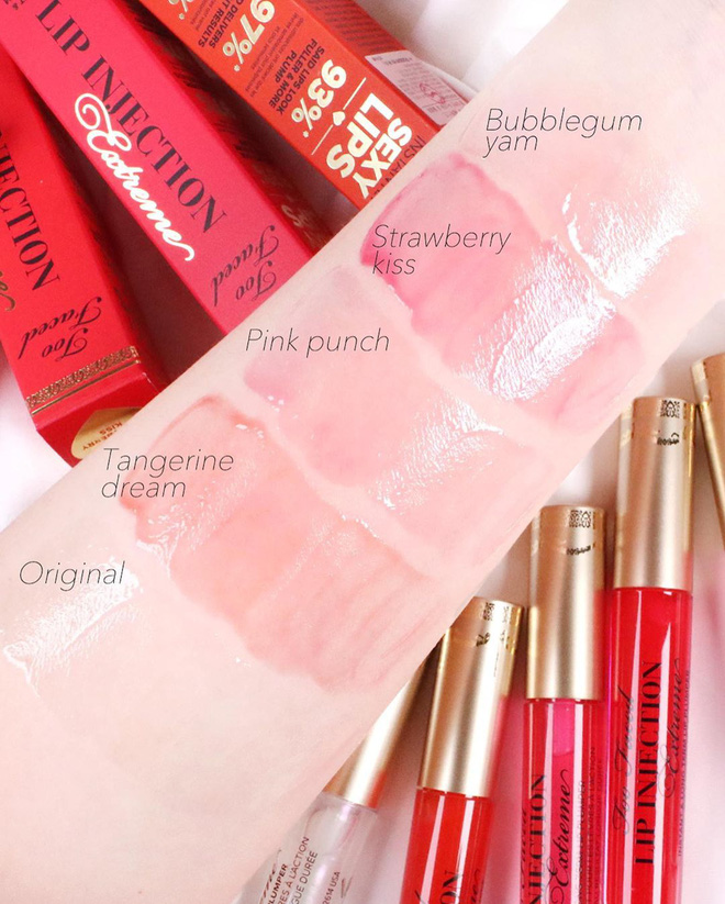Một trong những dòng son nhiều dưỡng, có độ bóng nhẹ giúp môi căng mọng hơn mà bạn cũng nên tăm tia lắm chính là Too Faced Lip Injection Extreme. Đừng mải mê rước về son lì mà quên đi chuyện dưỡng môi hoặc apply thêm lớp son bóng giúp "hack" đi rãnh môi hiệu quả.