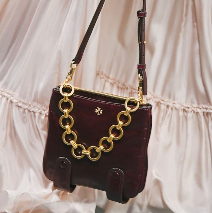 Xích xuất hiện ở khắp mọi nơi, từ đồ trang sức đến giày và bây giờ là túi xách. Bộ sưu tập mùa thu 2020 của Tory Burch có hàng loạt túi xách được tô điểm bằng xích, nhà mốt JW Anderson dùng xích làm quai đeo, Ulla Johnson thì tết nhiều sợi xích khác nhau để trang trí túi xách.
