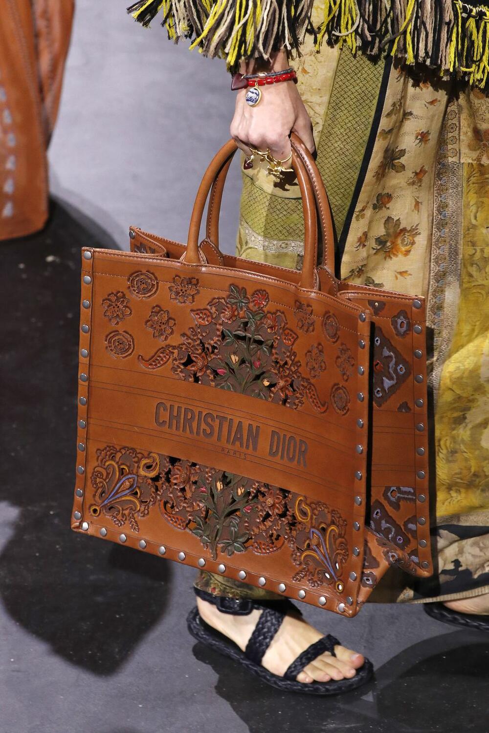 Giày dép dệt vốn có nguồn gốc từ phong cách bohemian. Nhưng với phiên bản năm 2021 của nhà mốt Dior, Acne và Bottega Veneta, những đôi dép này được nâng cấp với quai bện dày, thường làm từ chất liệu da được đánh bóng.