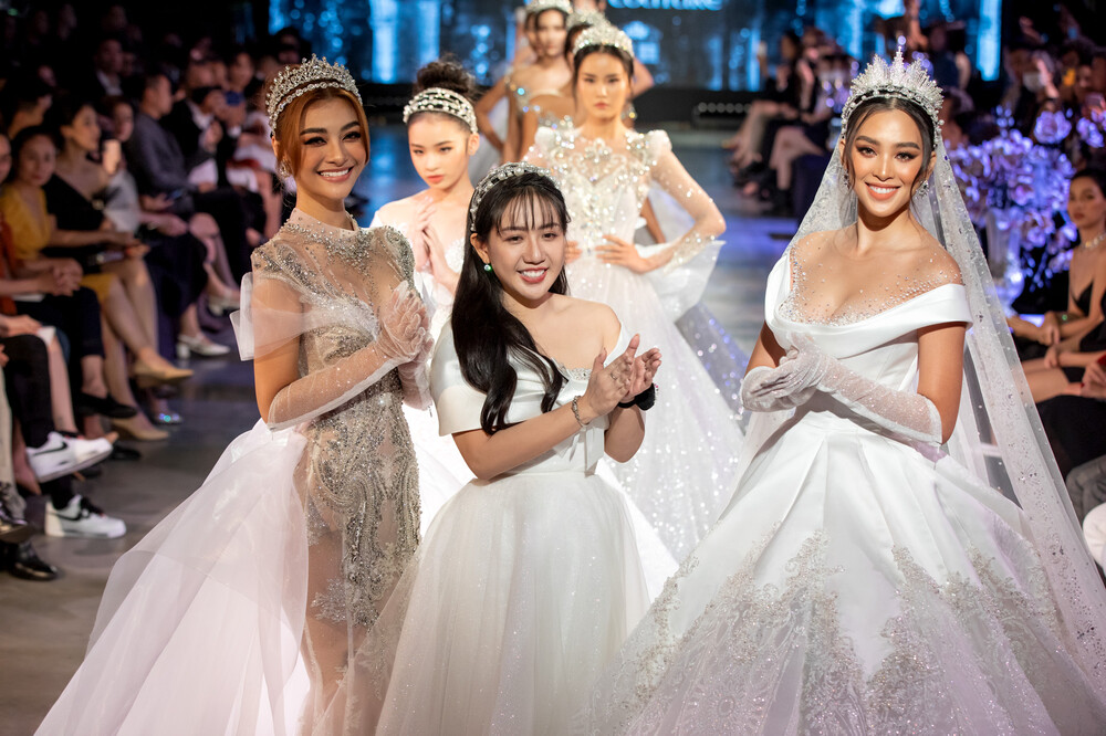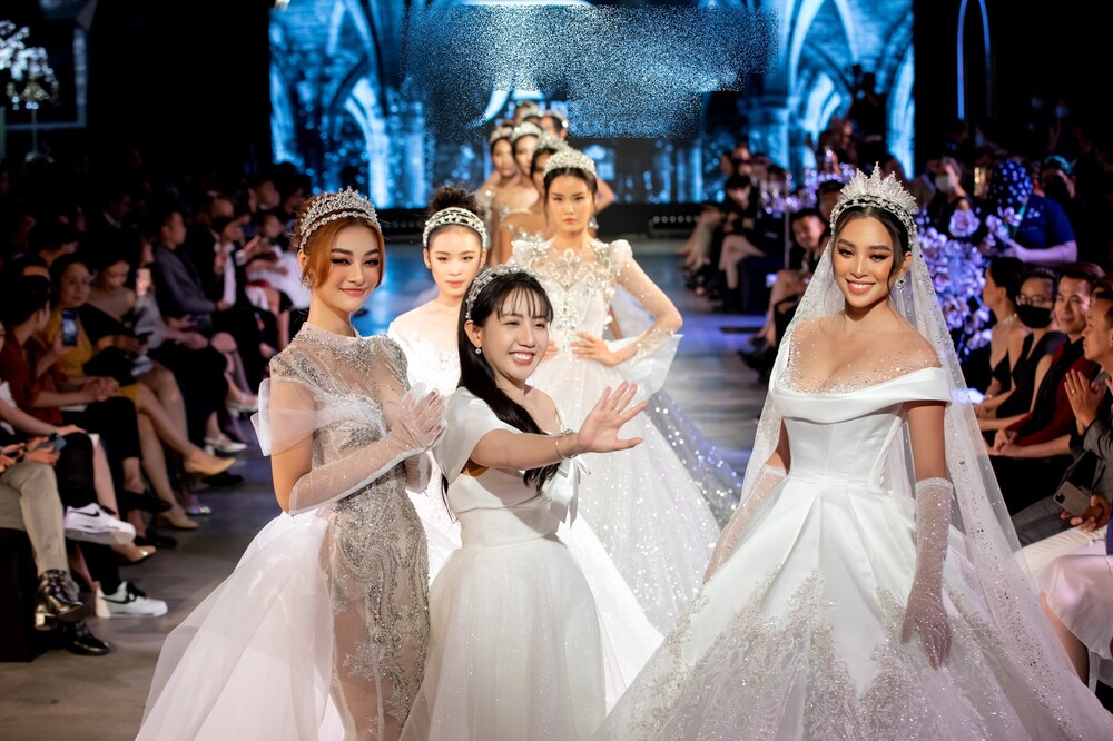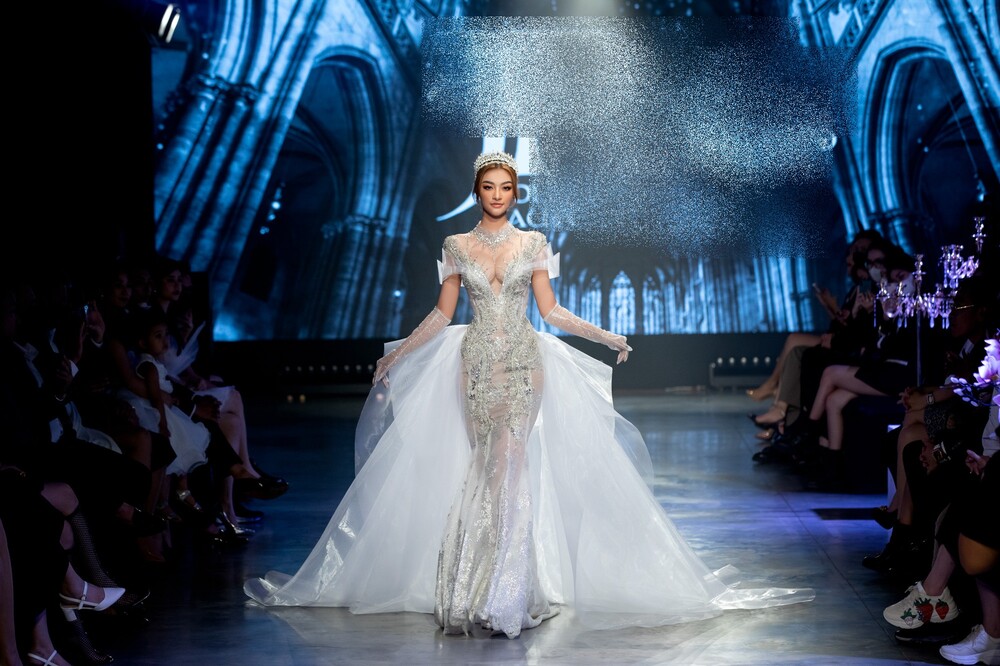 Kết thúc show, Hoa hậu Tiểu Vy xuất hiện như nữ thần trong vai trò vedette với một thiết kế tuyệt đẹp.