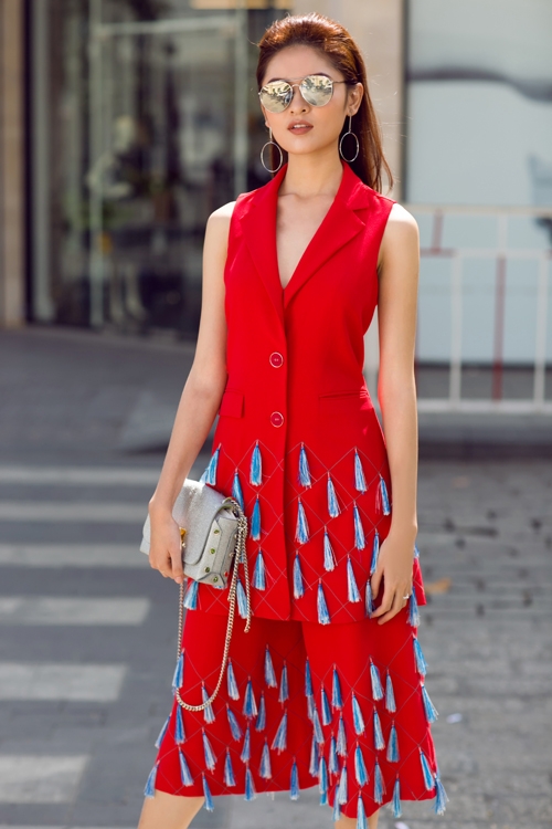 | Những bộ cánh trên tông màu nổi bật, trang trí hoa văn, họa tiết bắt mắt được người đẹp chọn lựa và sử dụng để thể hiện tinh thần ăn mặc hợp mốt. |