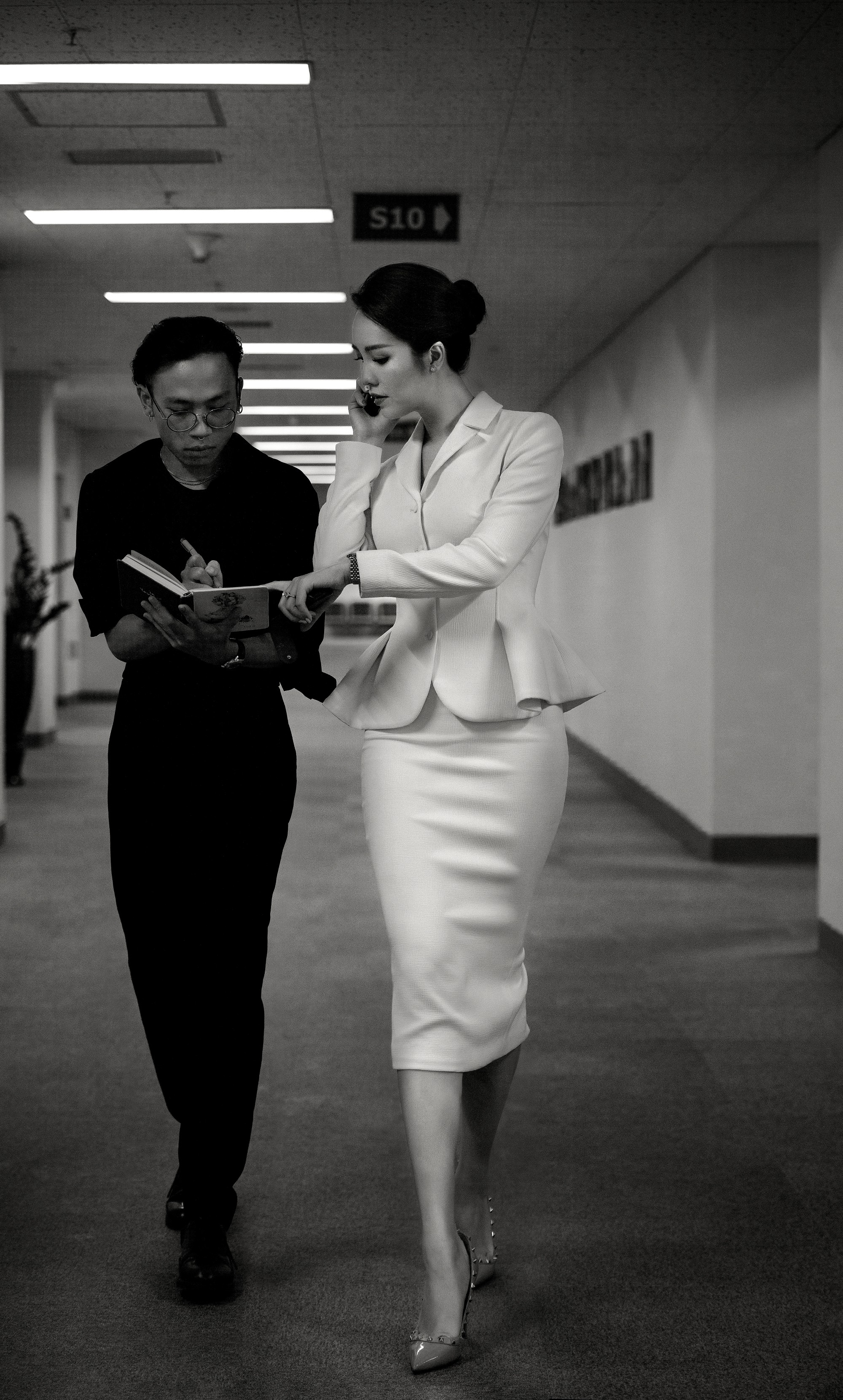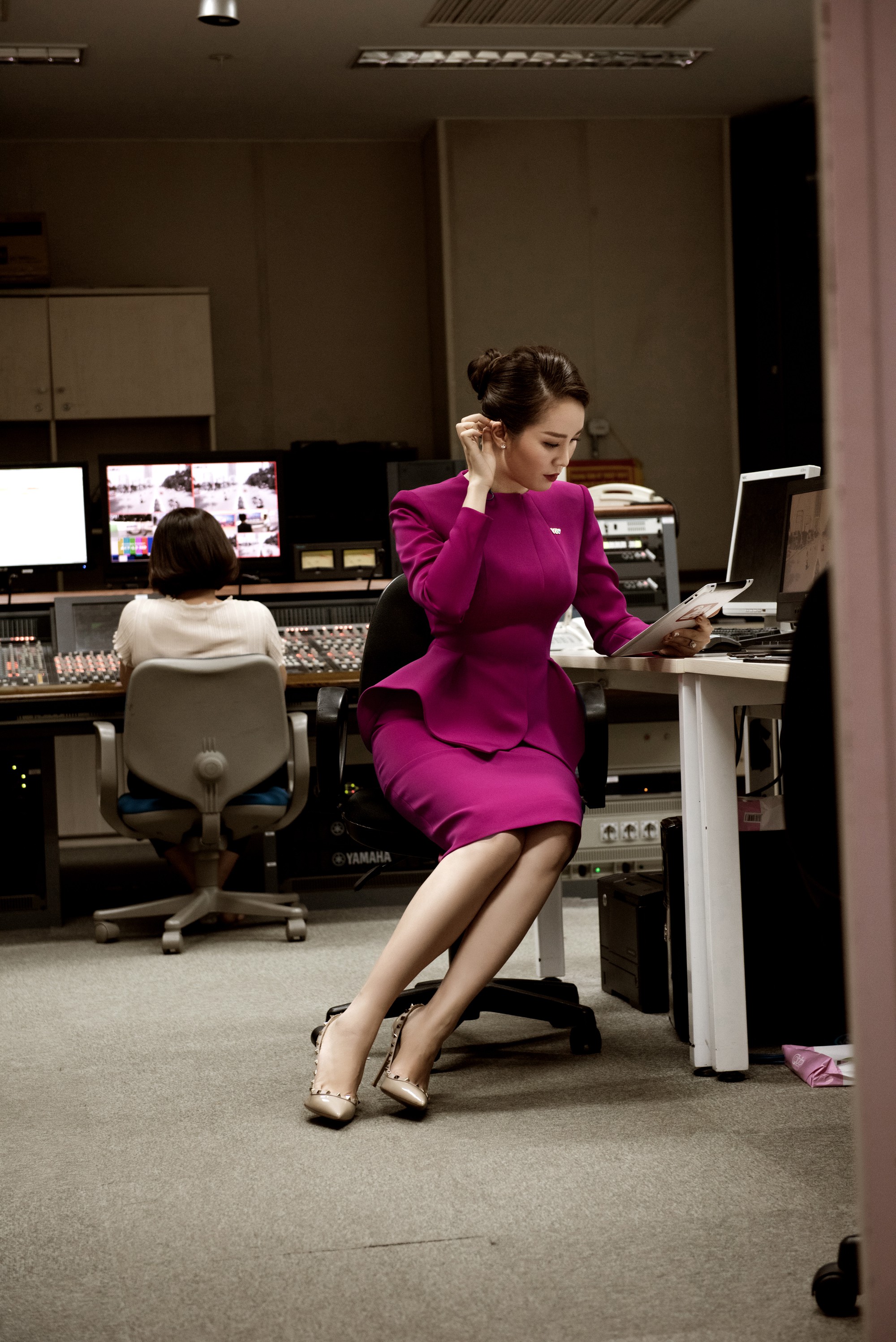 Nhân vật đứng sau hình ảnh thanh lịch chỉn chu của Á hậu Thụy Vân mỗi khi lên sóng là NTK Jenny K Trần, NTK tập trung lựa chọn cho nàng Á Hậu những trang phục có màu đơn sắc như trắng, đen – trắng, tím đậm, đỏ đun, đỏ đậm…, tránh các họa tiết quá rực rỡ. Những bộ váy liền thân ôm vừa khít với cơ thể có độ dài quá đầu gối, phần vai gần như kín đáo và không để lộ quá nhiều da thịt. Với set áo vest mix chân váy bút chì, điểm nhấn giúp set đồ nổi bật là sự chi tiết peplum đầy sáng tạo ở vòng eo.
