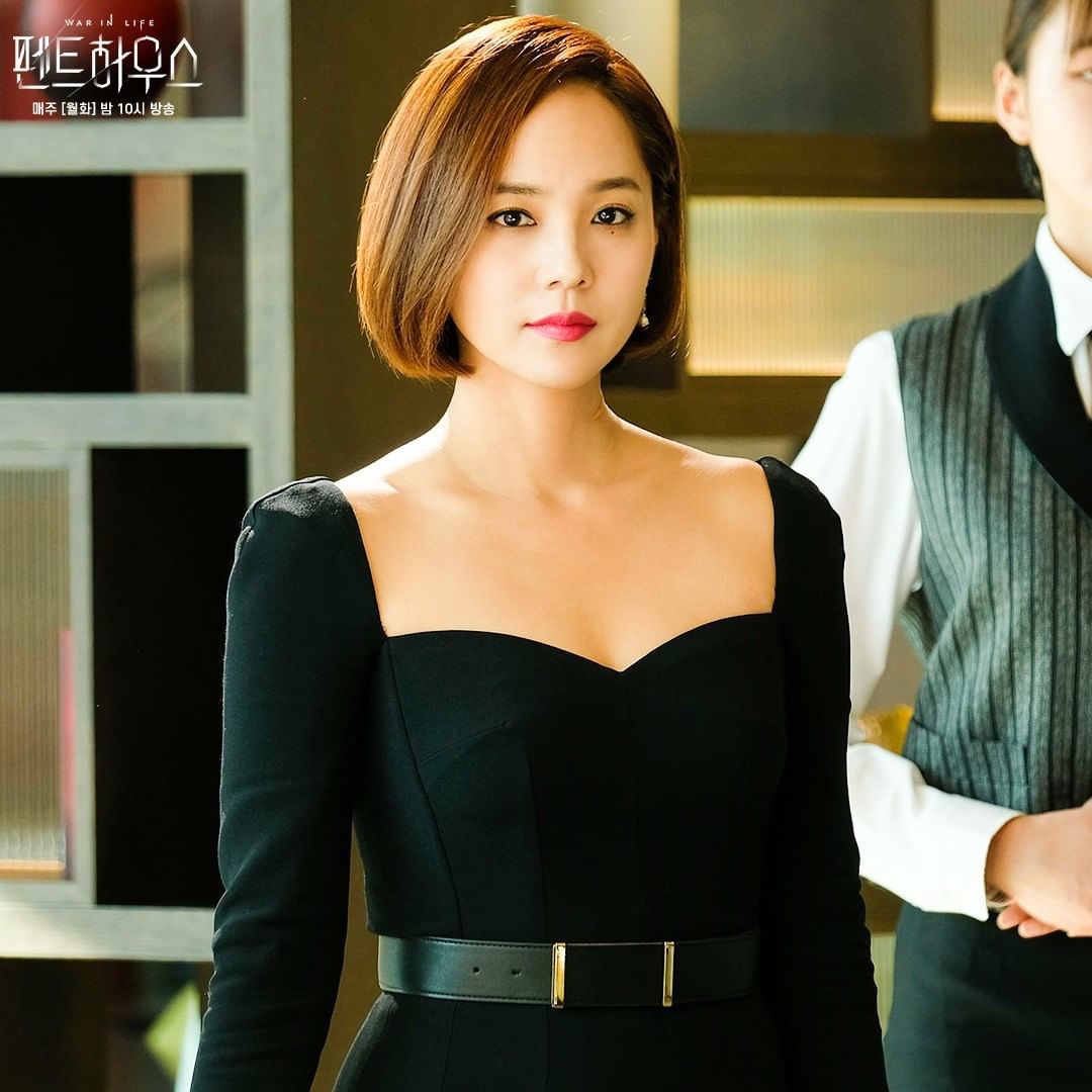 Trong "Penthouse", Eugene được thử nghiệm khá nhiều phong cách, từ những outfit đậm chất thanh lịch như bộ suit, blazer + quần âu + áo sơ mi hay váy liền đứng dáng… cho đến những chiếc đầm dự tiệc lồng lộn và gợi cảm. Nhờ ưu tiên những chi tiết như: cổ chữ V khoét sâu vừa phải hay cổ vuông, Eugene đã khoe được vòng 1 căng đầy, vóc dáng mặn mà, quyến rũ. Bên cạnh đó, những chi tiết nhấn eo, tuyệt chiêu sơ vin hay quần ống rộng + giày cao gót cũng chính là những vũ khí giúp Eugene cải thiện chiều cao khiêm tốn của mình.