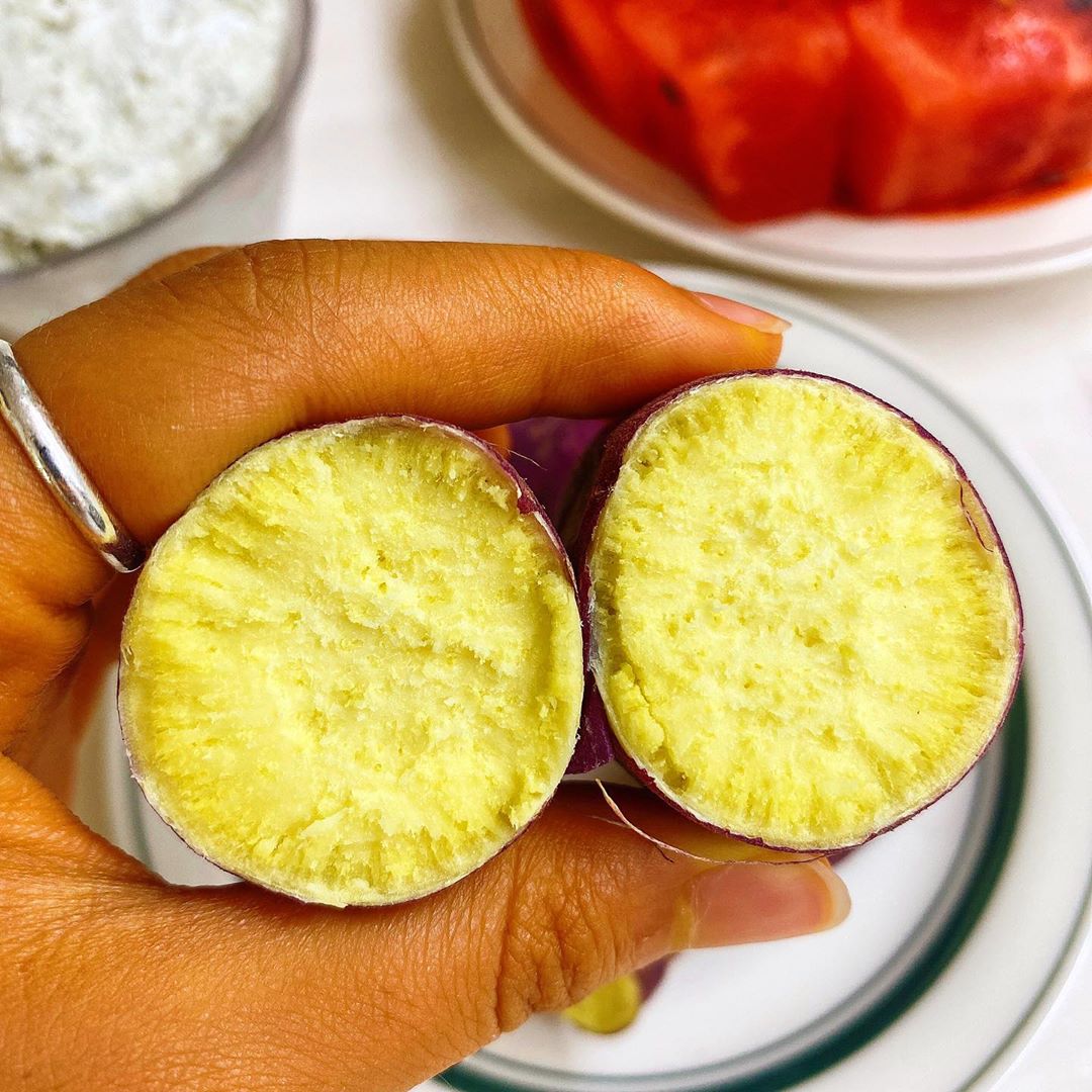 Khoai lang không chỉ rẻ mà còn là thực phẩm vàng trong làng giảm cân, được nhiều mỹ nhân Kbiz ăn để giảm cân. Nếu như trong 100g gạo chứa khoảng 244 kcal, còn 100g khoai lang chỉ chứa 119 kcal. Ngoài ra, dù năng lượng thấp nhưng trong khoai lang lại giàu các chất khoáng, vitamin, sắt và canxi nên rất tốt cho sức khỏe, giúp no lâu, giảm sự thèm ăn. Khoai lang còn ngăn chặn sự hấp thụ chất béo và hỗ trợ sản xuất vi khuẩn tốt cho đường ruột. Chỉ cần ăn 1 - 2 củ khoai lang vào bữa sáng là bạn đã có đủ năng lượng để hoạt động suốt ngày dài.