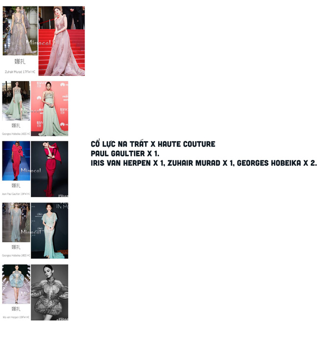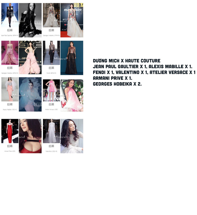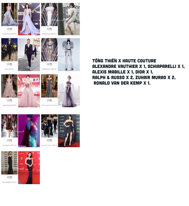 Gần đây, cư dân mạng xứ Trung đã thống kê, điểm lại những lần các sao Cbiz được diện váy Haute Couture của các hãng thời trang danh tiếng. Và kết quả, Angela Baby đã dẫn đầu danh sách với 62 bộ, đến từ các nhà mốt danh tiếng như Dior, Elie Saab, Zuhair Murad, Giambattista Valli... Có thể thấy, bà xã Huỳnh Hiểu Minh rất được lòng các nhà mốt danh tiếng. Sở hữu vóc dáng mảnh mai, gương mặt xinh đẹp quyến rũ, Angela Baby luôn được khen ngượi đẹp như nàng công chúa mỗi khi khoác lên mình các thiết kế Haute Couture.