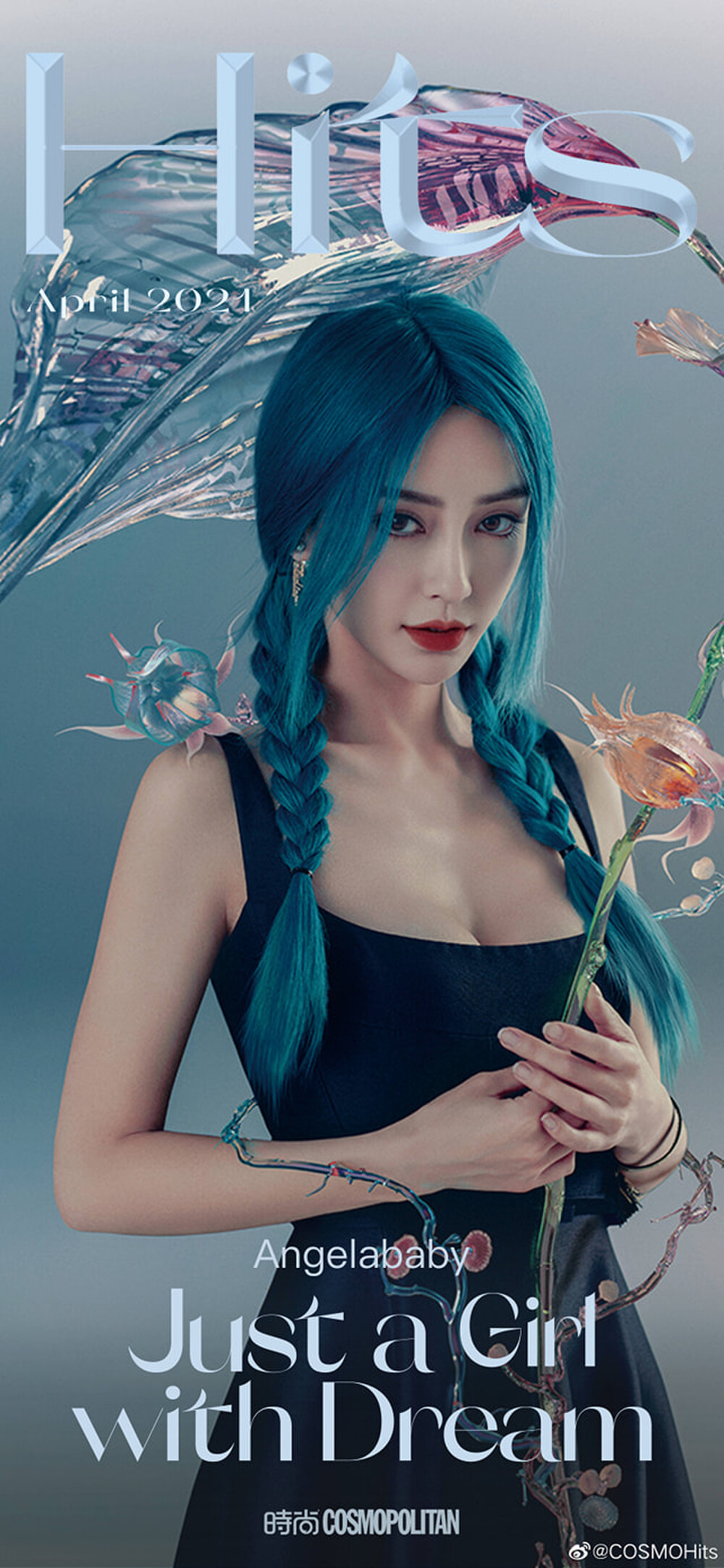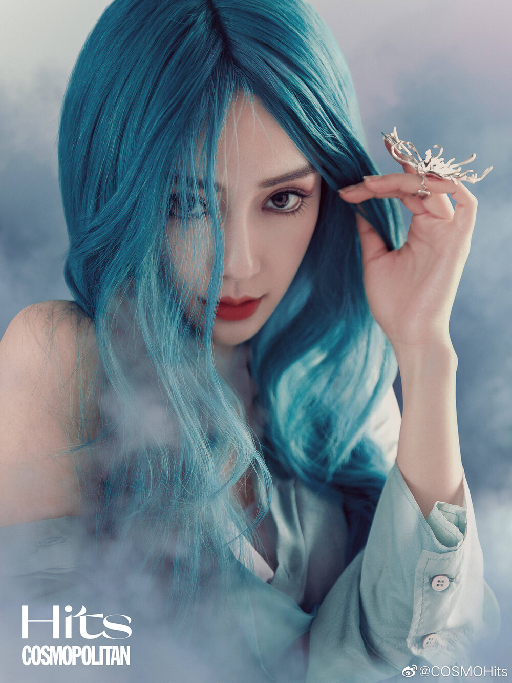 Mới đây, Angelababy lại có màn xuất hiện đầy ấn tượng trên bìa tạp chí COSMOHits vừa qua. Mái tóc màu xanh ngọc bích của nữ diễn viên gây ấn tượng mạnh với các khán giả.