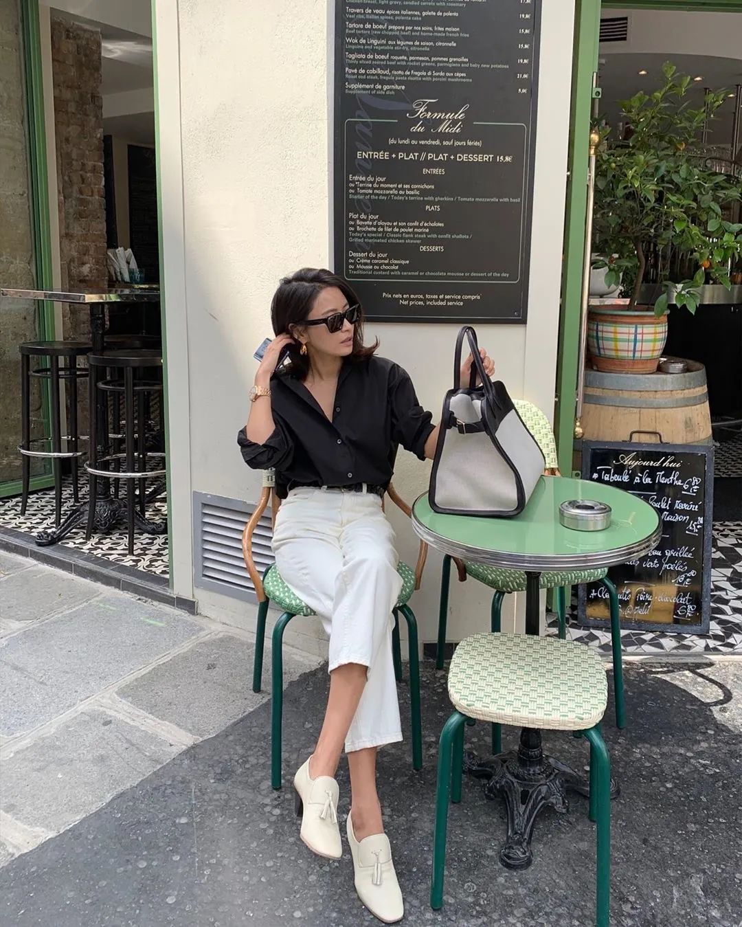 Combo trên ngắn dưới dài luôn có khả năng hack dáng nhiệt tình khiến chân trông dài hơn. Khi diện quần cạp cao, nếu sơ vin áo vào trong quần sẽ vừa giúp tôn eo thon lại khoe được chân dài.