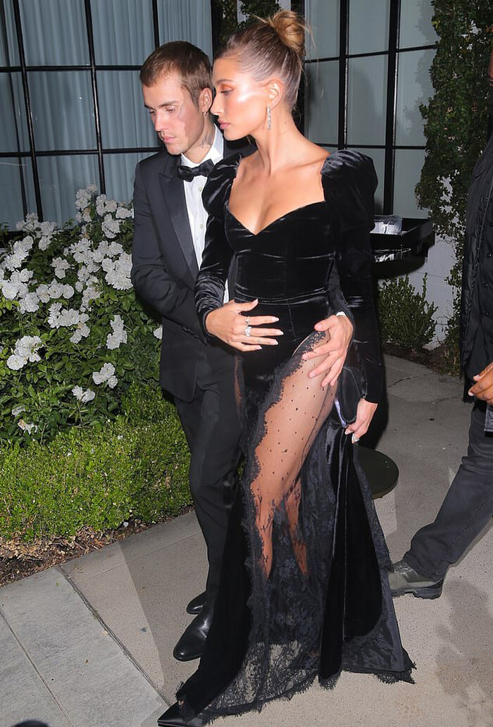 Hình ảnh Hayley Bieber sexy táo bạo trong những bộ đầm sexy hiểm hóc đã chuyện hết sức bình thường nhưng lần này đến Justin Bieber cũng phải "kè kè" bên cạnh vợ để che chắn cho vợ khỏi lộ hàng trước cả ngàn ống kính máy ảnh. Vừa xuất hiện một cái là Justin Bieber đã liên tục dùng tay che chắn phần hông xẻ cao tít tắp cho vợ rồi. Nhất cử nhất động của anh chàng đều tập trung vào cô vợ nóng bỏng bên cạnh.