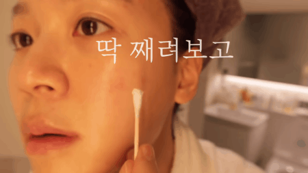 Cô Joohee cũng gặp rắc rối với những nốt mụn sưng đỏ. Trong trường hợp này cô sẽ dùng tăm bông chấm gel trị mụn để thoa lên nốt mụn. Thay vì dùng đầu ngón tay, việc dùng tăm bông sẽ đảm bảo vệ sinh, hạn chế vi khuẩn sinh sôi và nốt mụn sưng tấy.