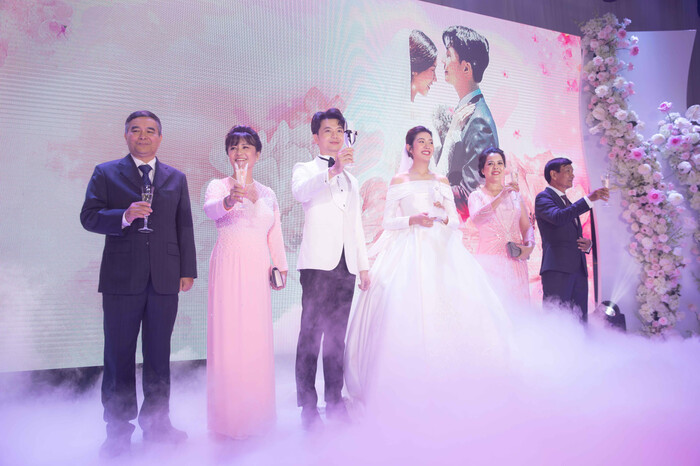Thúy Vân cùng ông xã doanh nhân Nhật Vũ vừa tổ chức đám cưới ở một khách sạn cao cấp tại TP HCM tối 25/7 với sự chúc mừng của hơn 200 khách mời thân thiết. Quyết giữ kín váy cưới đến phút cuối, những mẫu váy của á hậu Thúy Vân diện trong đám cưới giúp cô trông nổi bật và gây ấn tượng với khách tham dự.