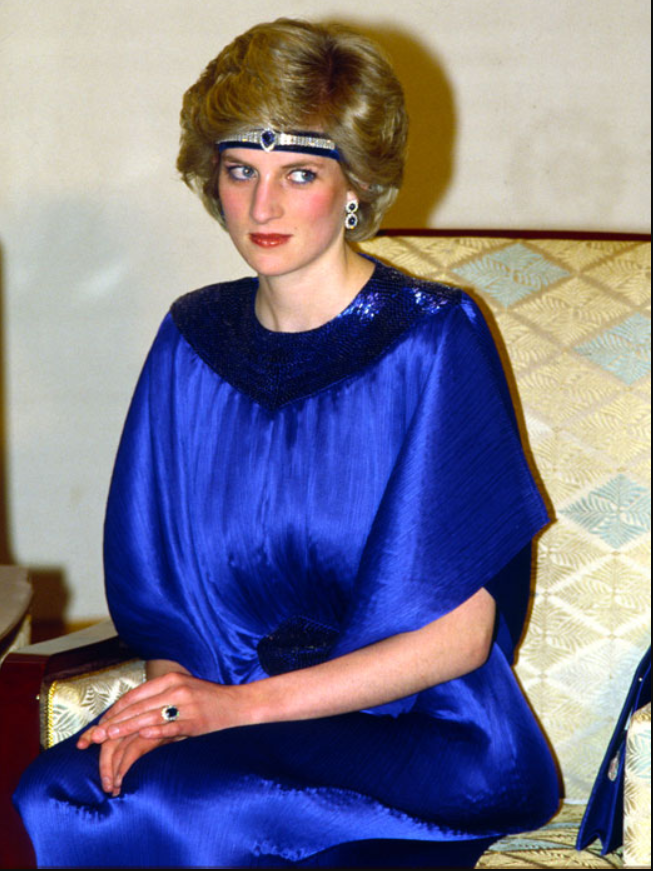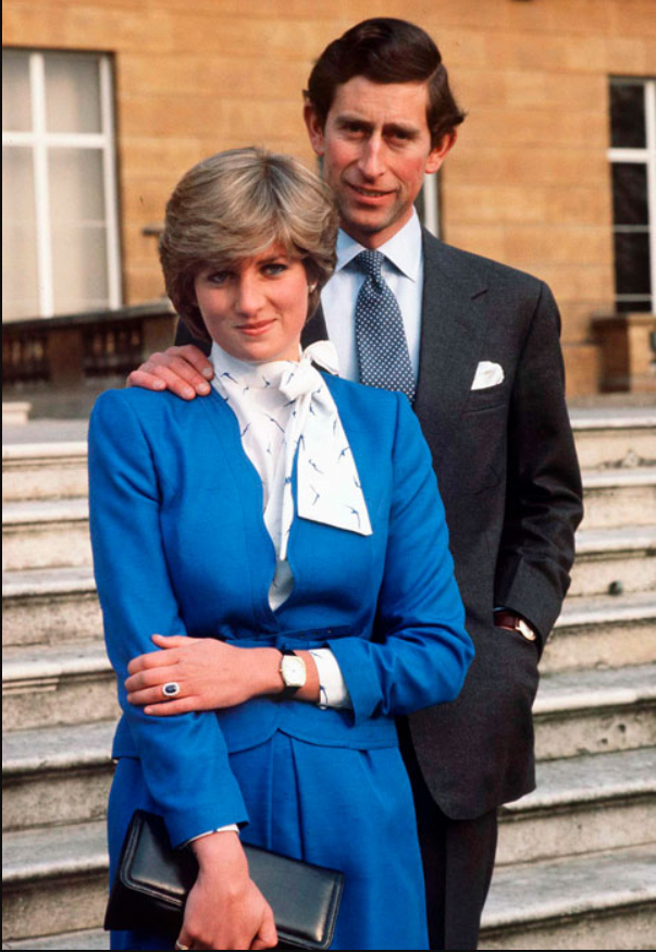 Người ta đồn rằng Công nương Diana thích đá sapphire vì chúng có màu sắc giống mắt của bà và còn giống với chiếc nhẫn đính hôn của mẹ bà. Công nương thậm chí còn mặc một bộ đồ màu xanh lam để phối hợp với chiếc nhẫn đính hôn màu xanh lam cho bức chân dung với Hoàng tử xứ Wales (Charles).