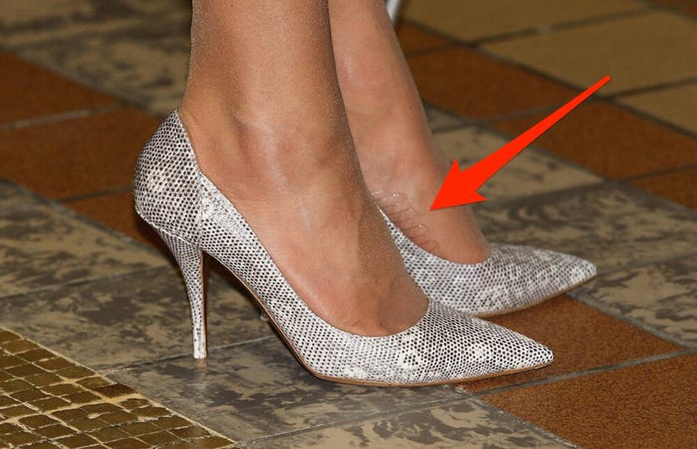 Đầu tiên, để không bị nhấc gót khỏi giày, Kate mặc quần tất chống trượt của John Lewis. Cửa hàng này bán một đôi tất lẻ với giá 8,40 USD. Điểm đặc biệt là loại tất này có một dải gel ở phía dưới giúp bàn chân của bạn bám chắc vào đế giày hơn.