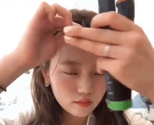 Hẳn bạn đã từng thắc mắc làm cách nào mà các cô bạn Hàn Quốc uốn được mái xoăn lơ thơ xinh như thế, hoá ra câu trả lời nằm cả ở máy ép tóc bản nhỏ. Bạn hãy chỉnh máy ở mức nhiệt cao nhất, kẹp máy vào từng lọn mái thật mỏng rồi miết và xoay nhẹ là đã có ngay kiểu mái xoăn "sương sương" dễ thương hết biết và cực kỳ ăn hình.