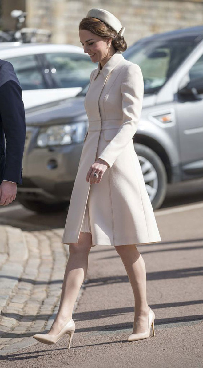 Bên cạnh đen thì be nude cũng là màu sắc thường thấy trên các item giày dép của nữ giới Hoàng gia, thậm chí dường như nàng nào cũng có ít nhất một đôi. Giày be tạo cảm giác trang nhã, đằm thắm, giúp tăng vẻ duyên dáng, yêu kiều cho chủ nhân, đặc biệt thích hợp với những cành đồ có tông màu dịu nhẹ như trắng, xanh baby, kem, xanh lá...
