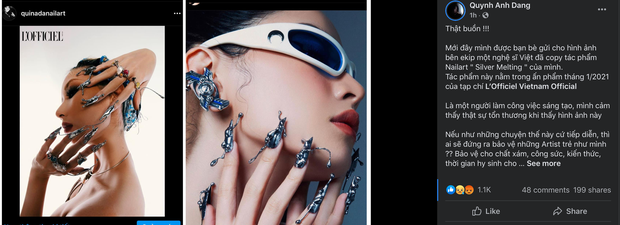 Liên hệ trực tiếp với Quỳnh Anh, chúng tôi nhận được chia sẻ thêm từ cô: "Đây là sản phẩm mình làm độc quyền cho tạp chí khác, vậy mà bên Chi Pu lại copy hết chất xám từ hình ảnh móng tay cho đến dáng pose của mẫu. Đây là phong cách mình gây dựng mất 2 năm, bạn bè trong nghề ai cũng biết. Hiện mình và cả ekip khá buồn vì sự việc này nhưng nếu không nói rõ thì chắc chắn sẽ còn nhiều lần như vậy lắm".