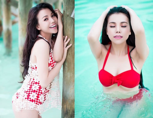 Hot girl Elly Trần, nữ ca sĩ Minh Hằng... khiến fan ngẩn ngơ khi khoe vẻ nóng bỏng với bikini đỏ.