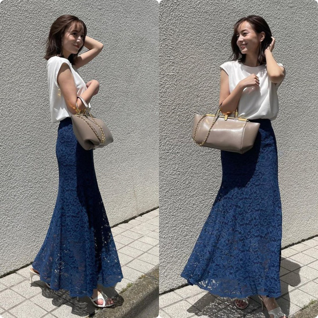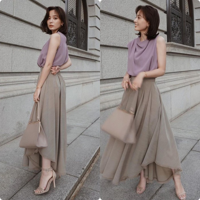 Và đây là chiêu mà Asami vẫn luôn tận dụng để chinh phục những chiếc chân váy dáng dài kén chiều cao nhất.