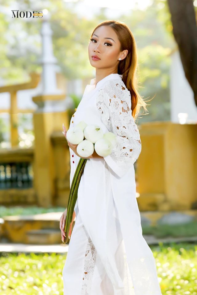 Cuối năm 2019, Jacqueline Đặng từng về Việt Nam và chụp hình với những bộ áo dài tuyệt đẹp.