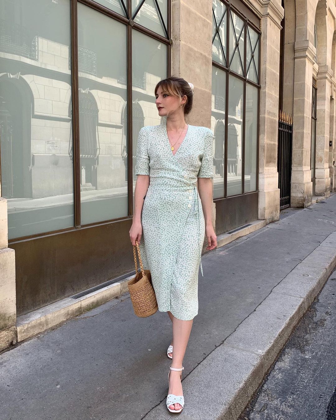 Nói không quá lời, váy quấn chính là kiểu váy được phụ nữ Pháp yêu thích nhất. Dạo quanh trang Instagram của hội gái Pháp sành điệu, bạn sẽ thấy item này chiếm sóng dày đặc từ năm này qua năm khác. Nhờ chi tiết cổ chữ V, tà váy xếp chồng, nhấn eo nhẹ mà váy quấn sẽ phân chia tỷ lệ cơ thể hợp lý, giúp vóc dáng của bạn trông cao thêm ít nhất 5 phân và thú vị không kém, mẫu váy này còn tạo hiệu ứng dáng gầy đi nên đặc biệt hữu ích cho những nàng mũm mĩm. Chưa hết, váy quấn còn là một item thanh lịch và sang trọng, nếu bạn diện những mẫu váy họa tiết hoa nhã nhặn, váy chấm bi… như lựa chọn của nhiều quý cô nước Pháp, diện mạo sẽ thêm phần trẻ trung, rạng rỡ.